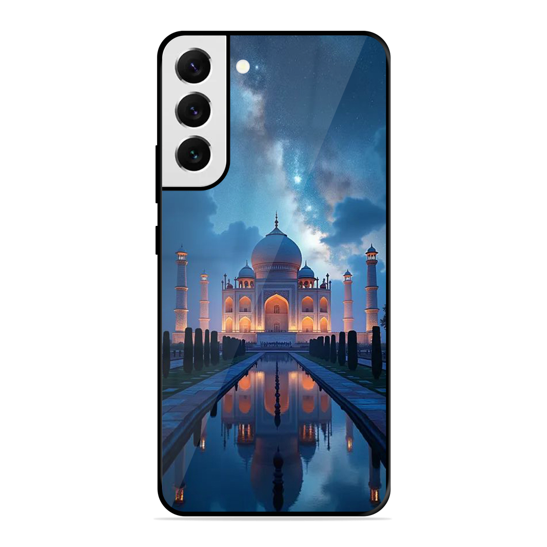 Tempered Glass Coated Metal Back Case for Samsung Galaxy S21 Fe 5G Night Taj Mahal