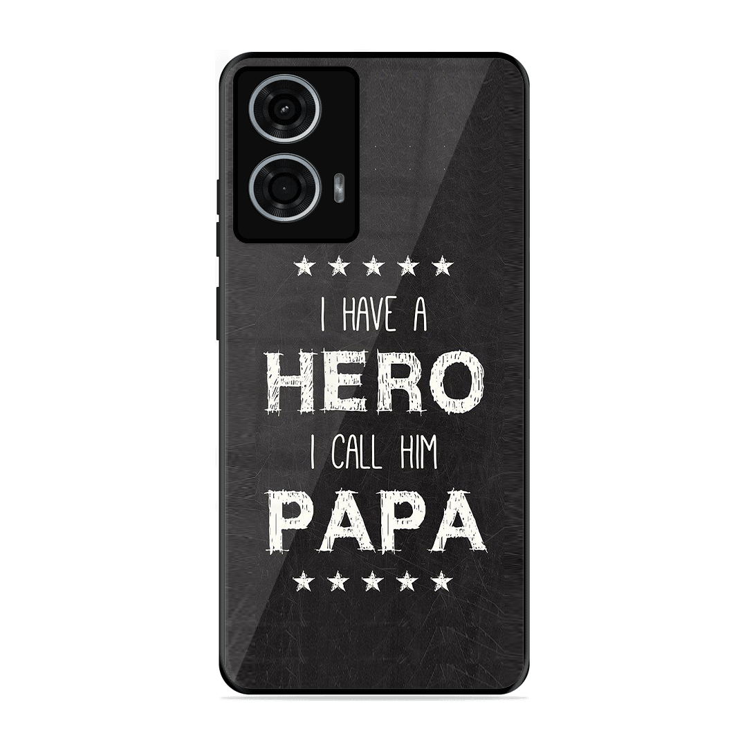 Tempered Glass Coated Metal Back Case for Motorola Moto G24 Power PAPA Is Hero
