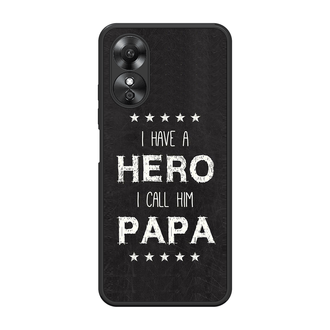 Tempered Glass Coated Metal Back Case for Oppo A17 PAPA Is Hero