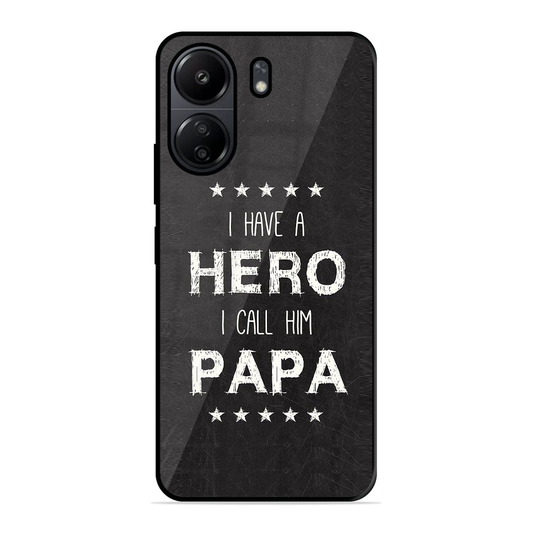 Tempered Glass Coated Metal Back Case for Poco C65 PAPA Is Hero