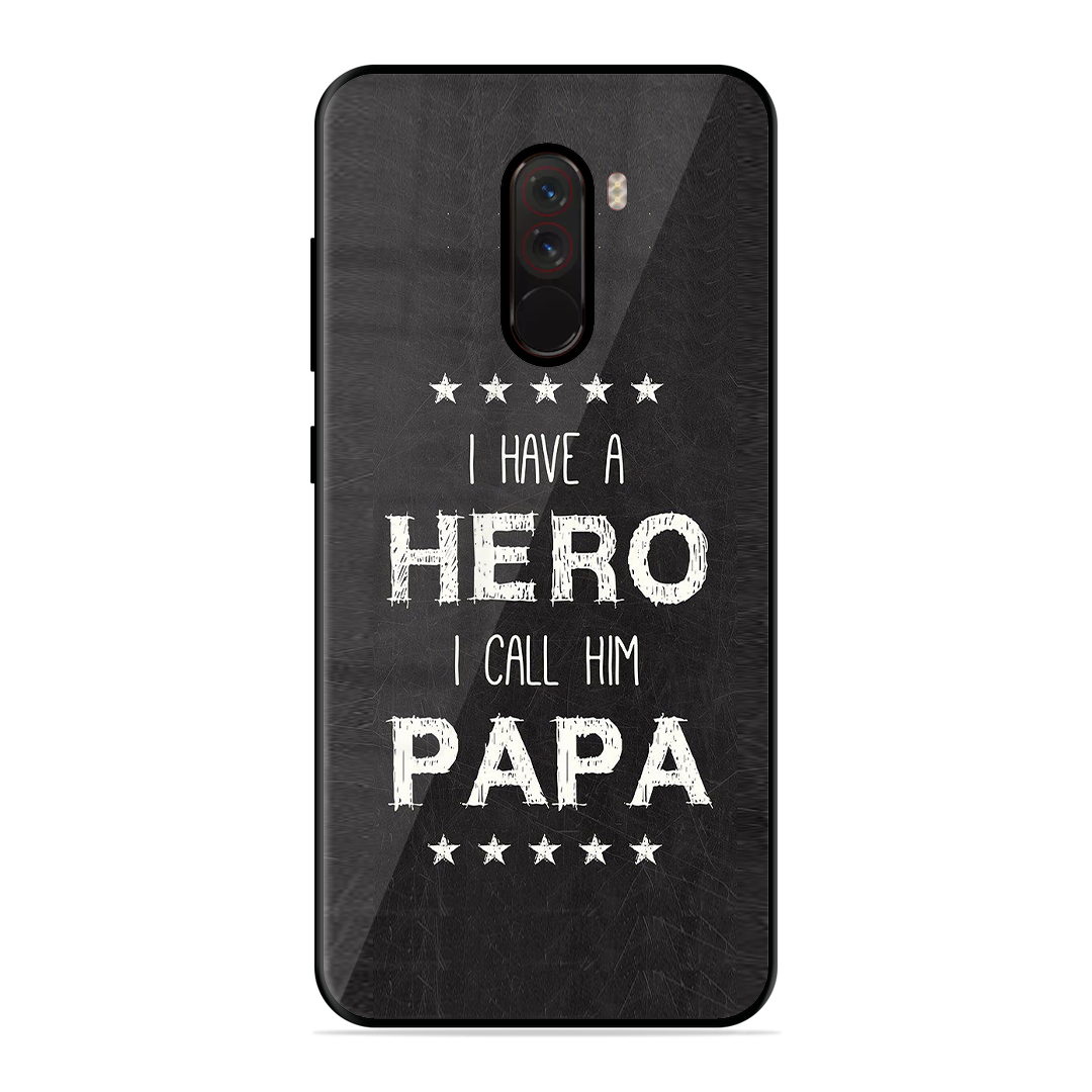 Tempered Glass Coated Metal Back Case for Poco F1 PAPA Is Hero