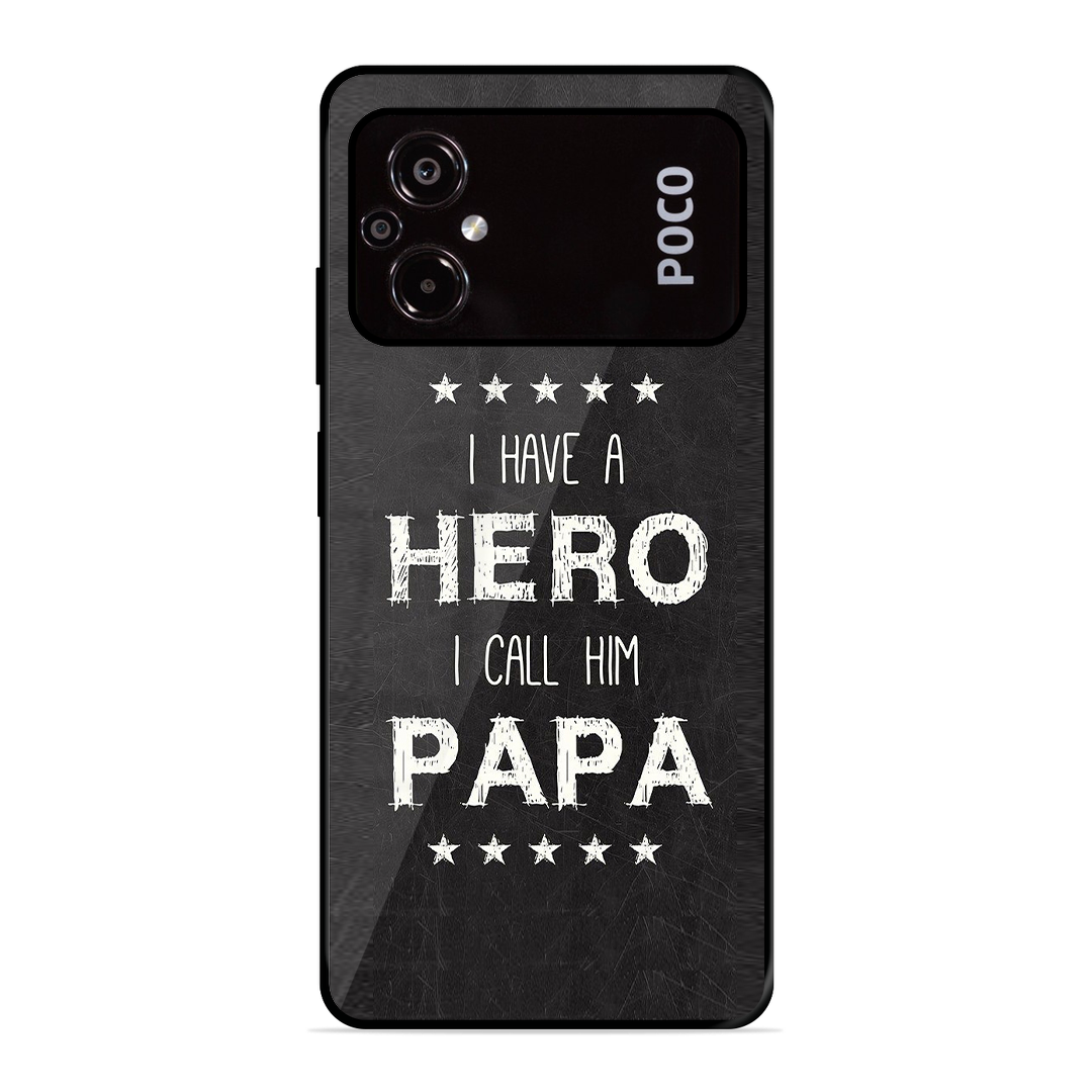 Introducing the ultimate fusion of bold design and rugged protection: the Tempered Glass Coated Metal Back Case for {brand} Poco M5 PAPA Is Hero. Thoughtfully crafted for those who demand both high performance and high style, this premium case redefines mobile protection with a stunning, custom twist.