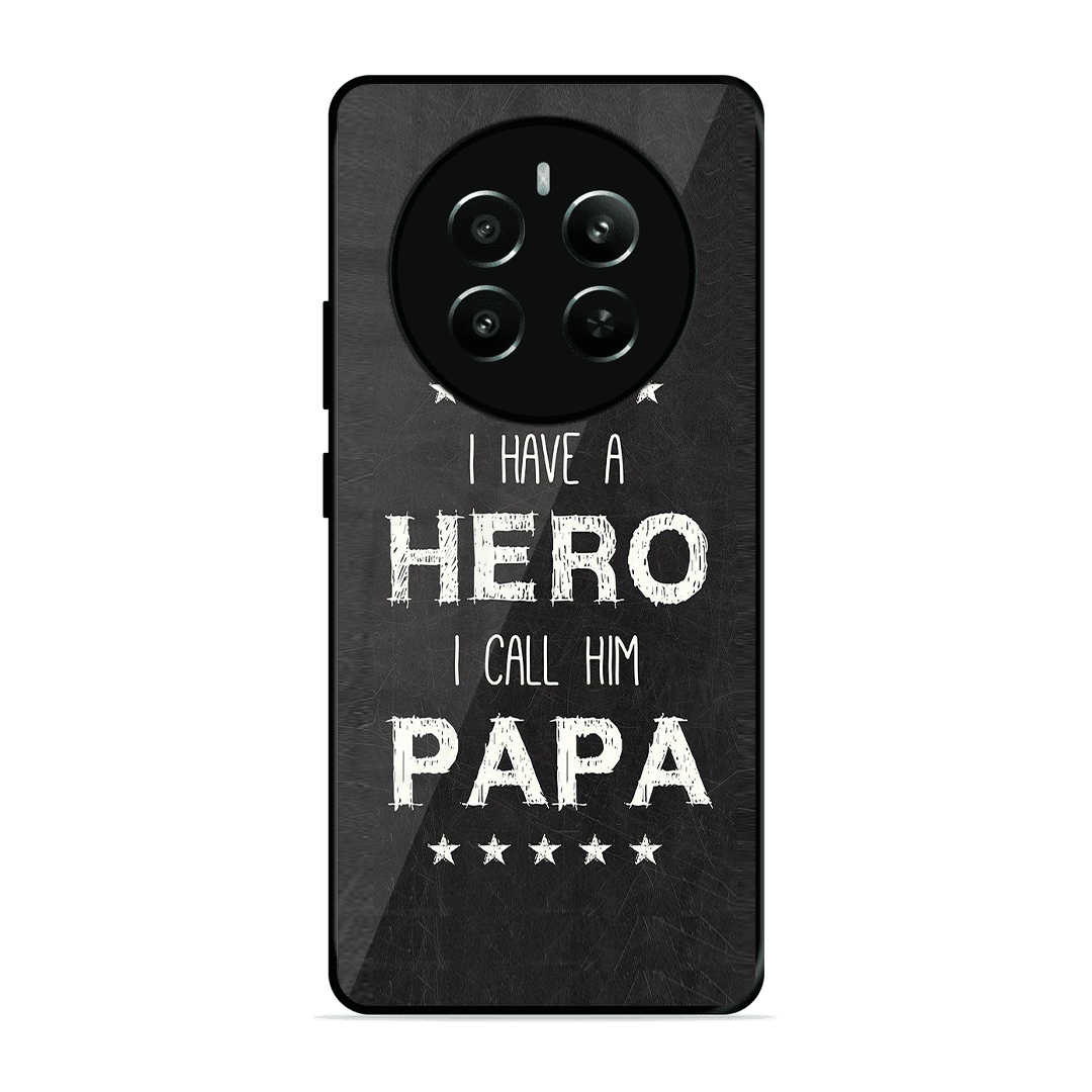 Tempered Glass Coated Metal Back Case for Realme 12 Plus 5G PAPA Is Hero