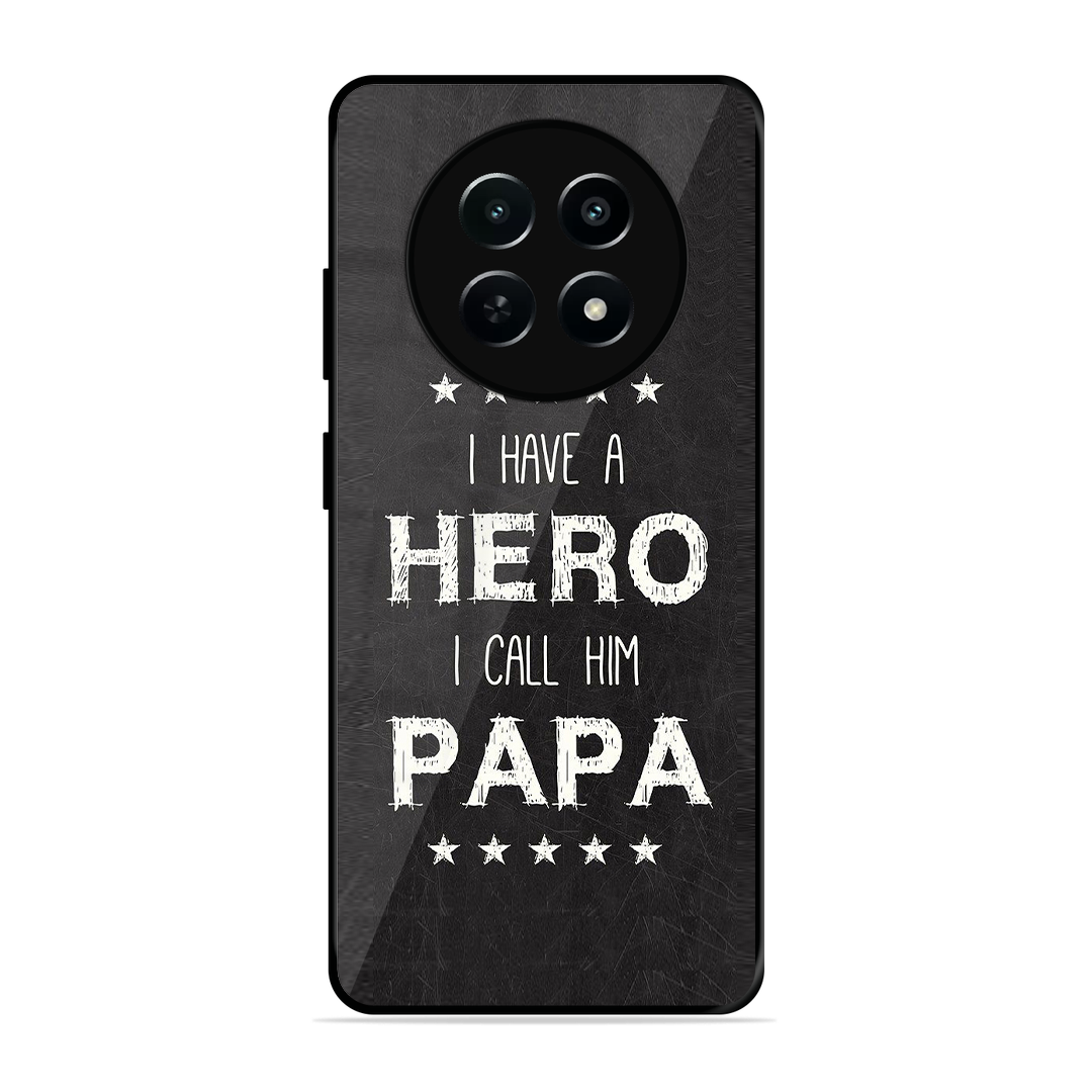 Tempered Glass Coated Metal Back Case for Realme 12X 5G PAPA Is Hero