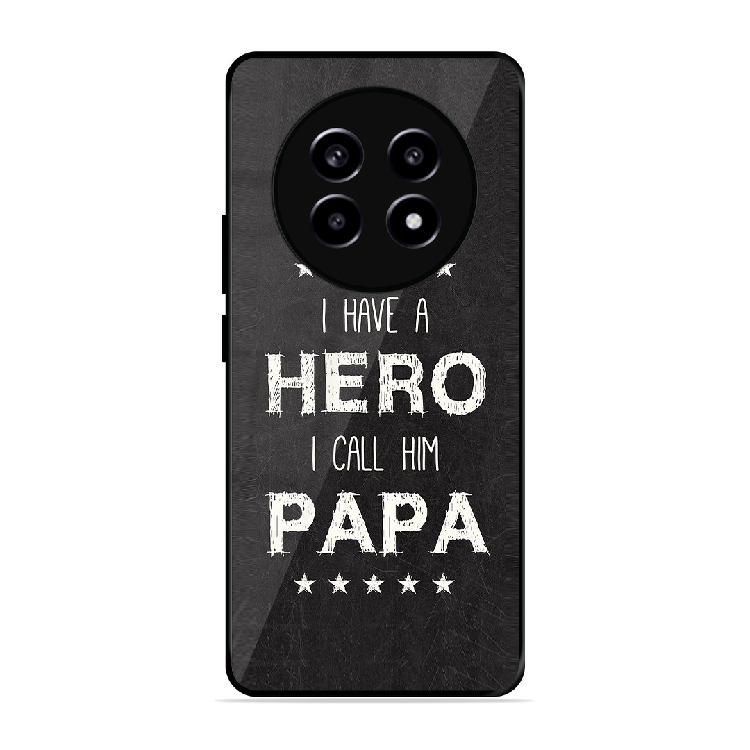 Introducing the ultimate fusion of bold design and rugged protection: the Tempered Glass Coated Metal Back Case for {brand} Realme-135G PAPA Is Hero. Thoughtfully crafted for those who demand both high performance and high style, this premium case redefines mobile protection with a stunning, custom twist.
