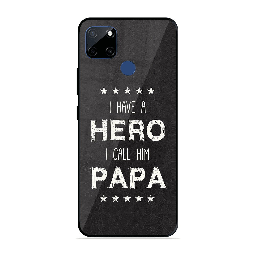 Tempered Glass Coated Metal Back Case for Realme C12 PAPA Is Hero