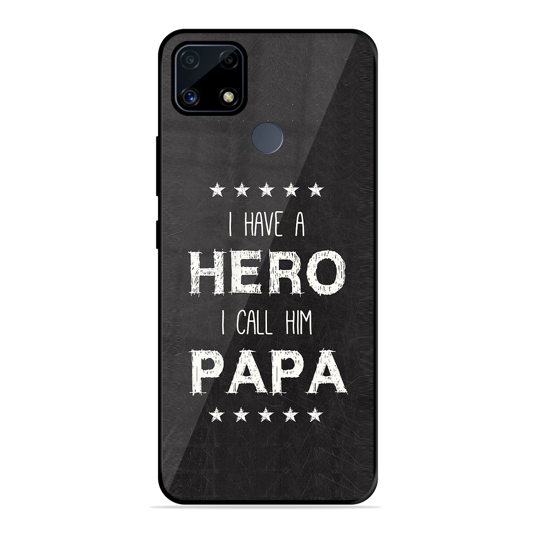Tempered Glass Coated Metal Back Case for Realme C25S PAPA Is Hero