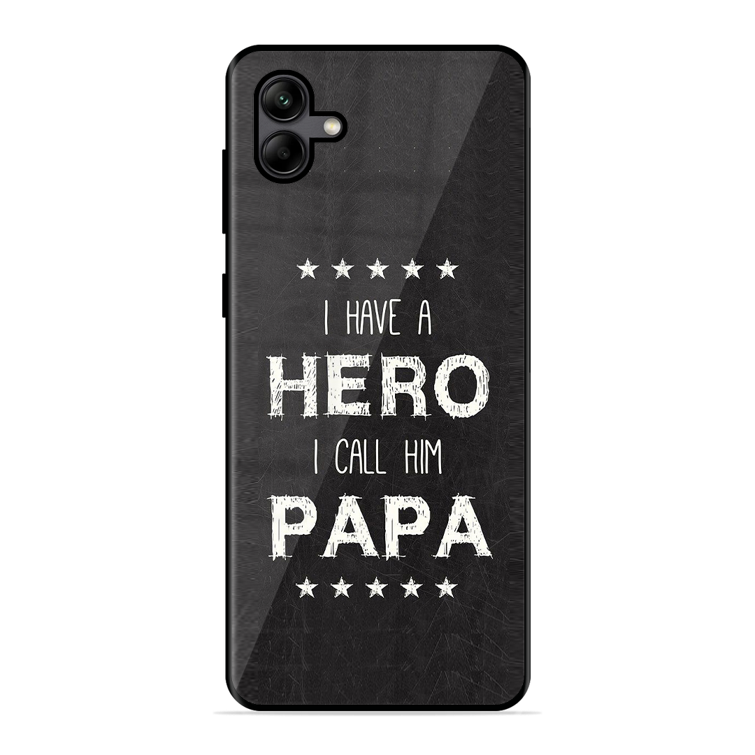 Tempered Glass Coated Metal Back Case for Samsung Galaxy A04 PAPA Is Hero