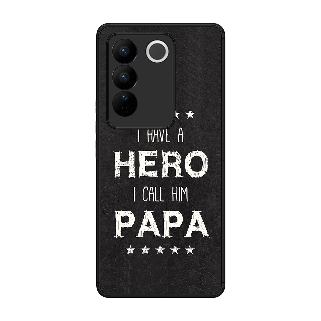 Tempered Glass Coated Metal Back Case for Vivo V27 5G PAPA Is Hero