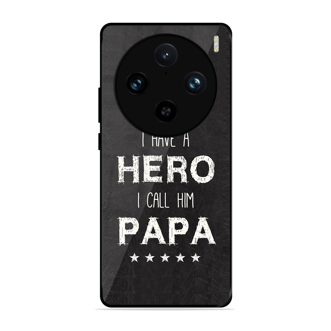 Tempered Glass Coated Metal Back Case for Vivo X100 Pro 5G PAPA Is Hero