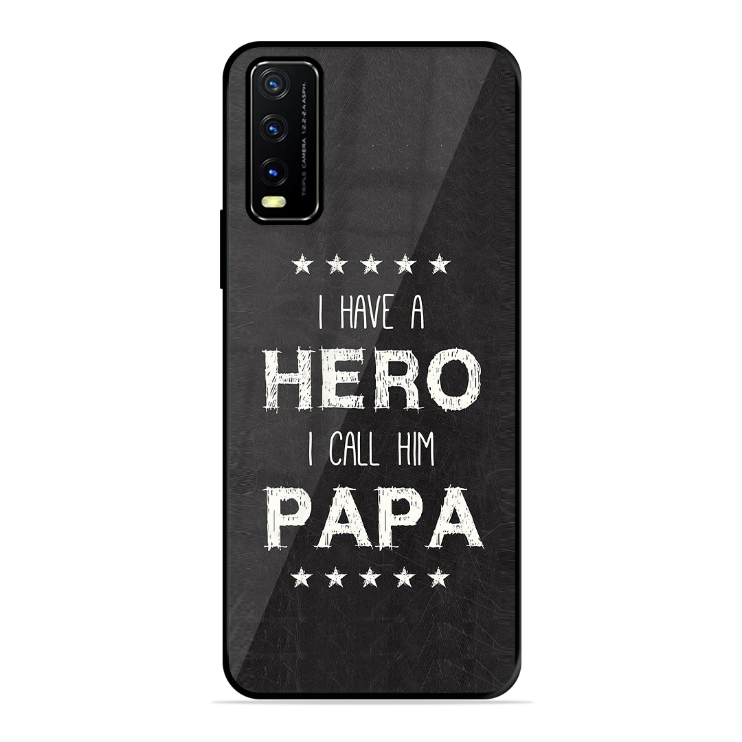 Tempered Glass Coated Metal Back Case for Vivo Y20G PAPA Is Hero