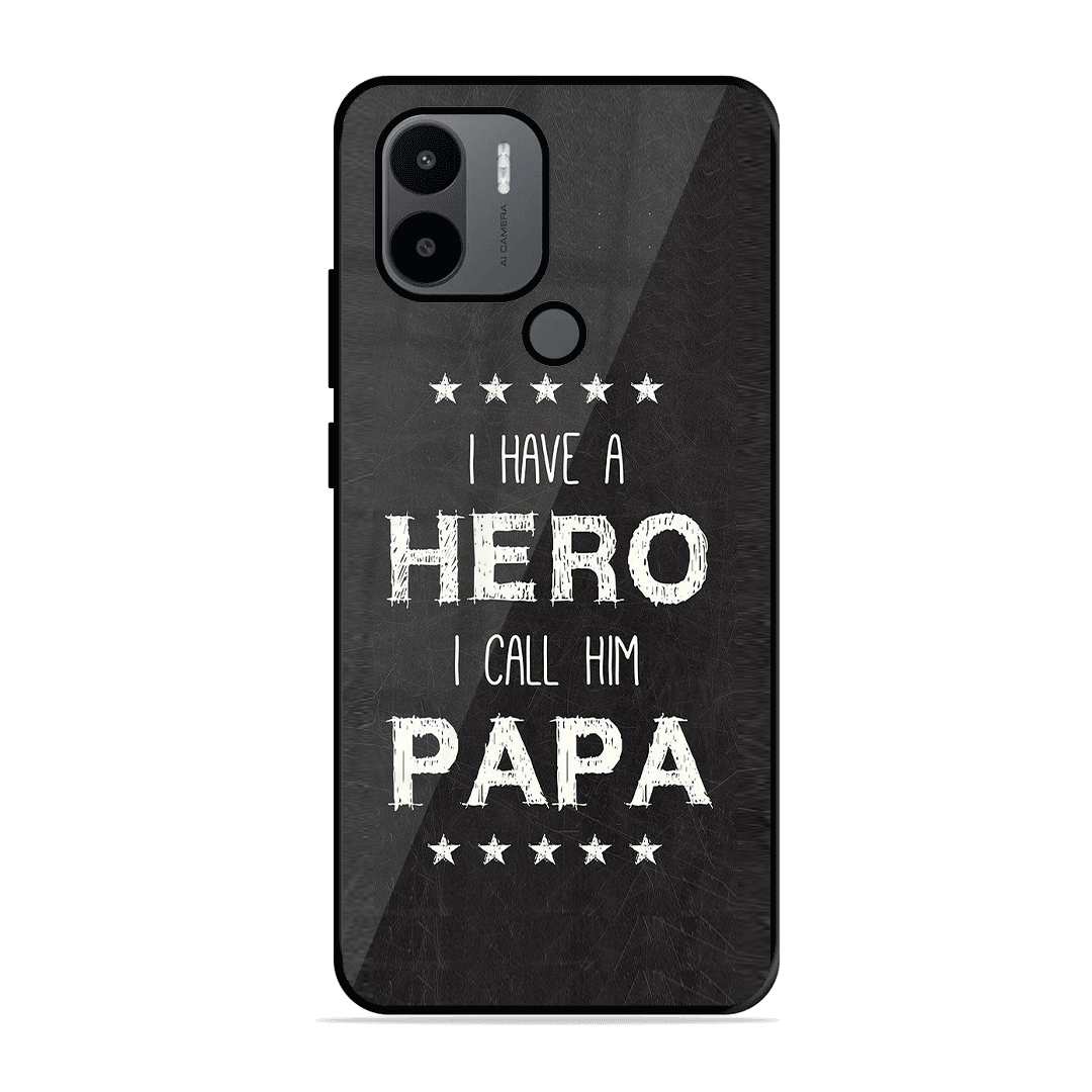 Tempered Glass Coated Metal Back Case for Xiaomi Redmi A1 Plus PAPA Is Hero