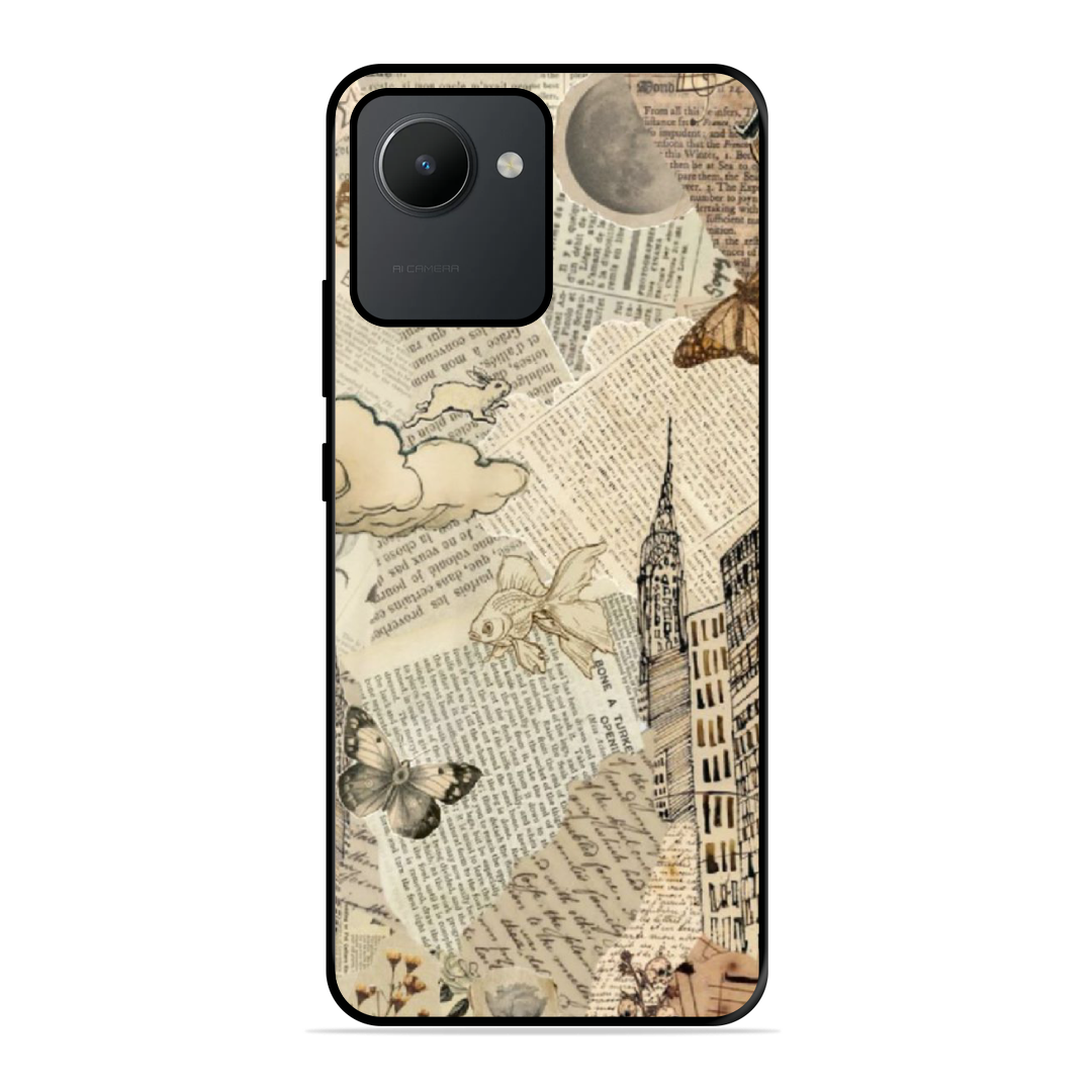 Tempered Glass Coated Metal Back Case for Realme C30 Paper Of Life