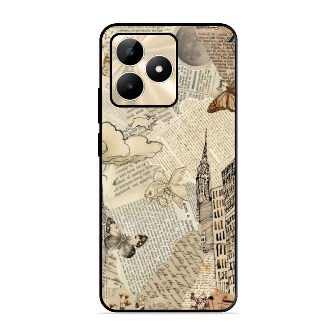 Tempered Glass Coated Metal Back Case for Realme C51 Paper Of Life