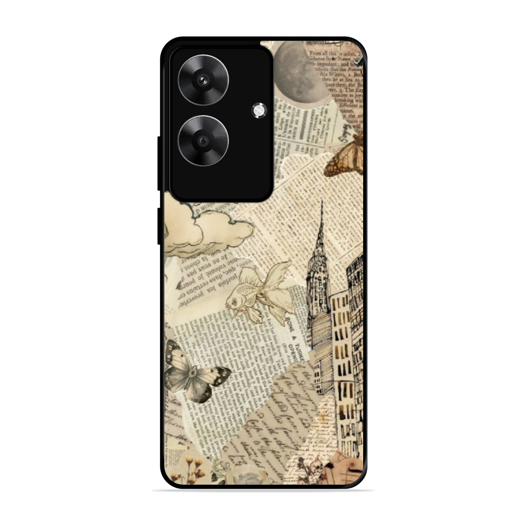 Tempered Glass Coated Metal Back Case for Realme C61 Paper Of Life