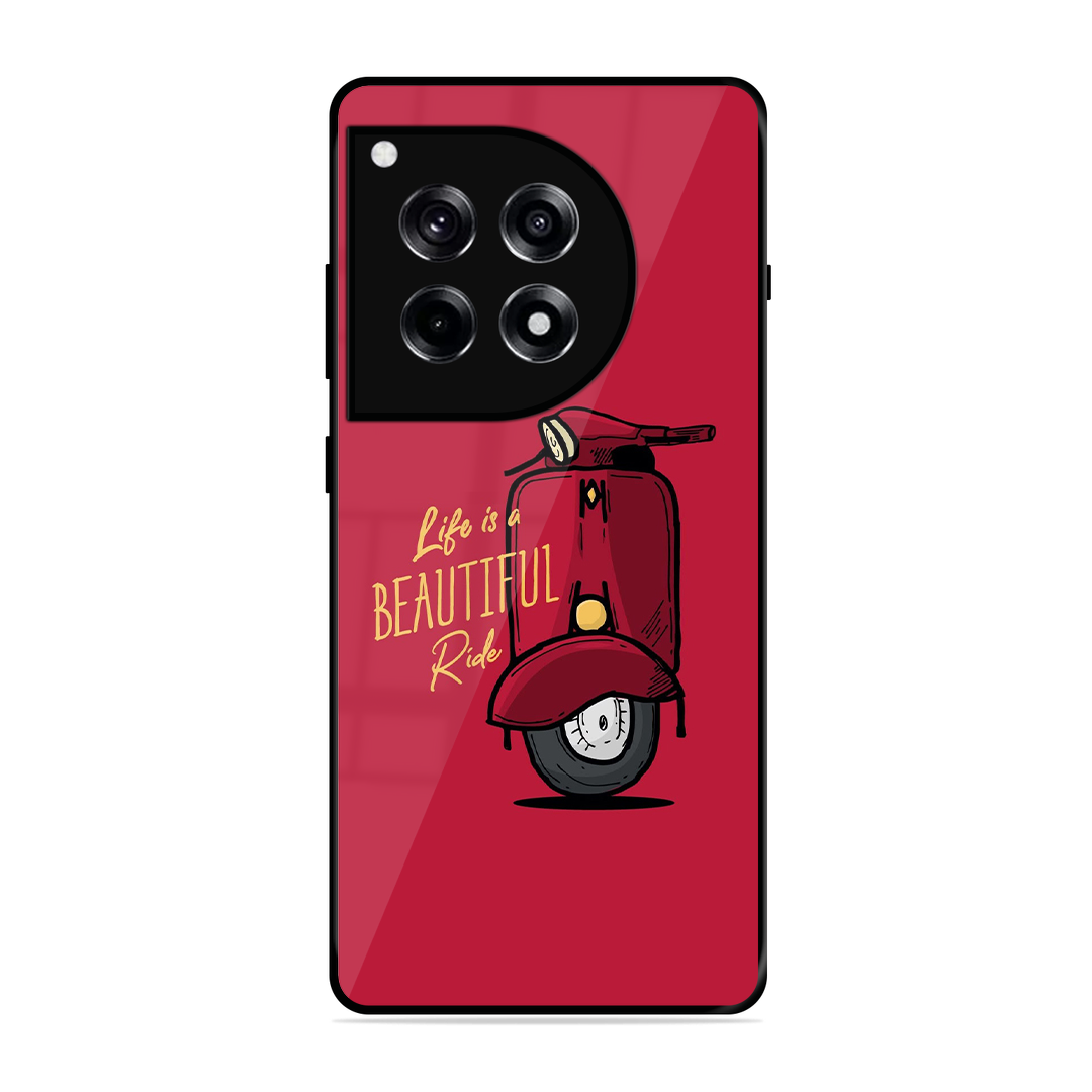 Tempered Glass Coated Metal Back Case for Oneplus 12R 5G Ride Is Life
