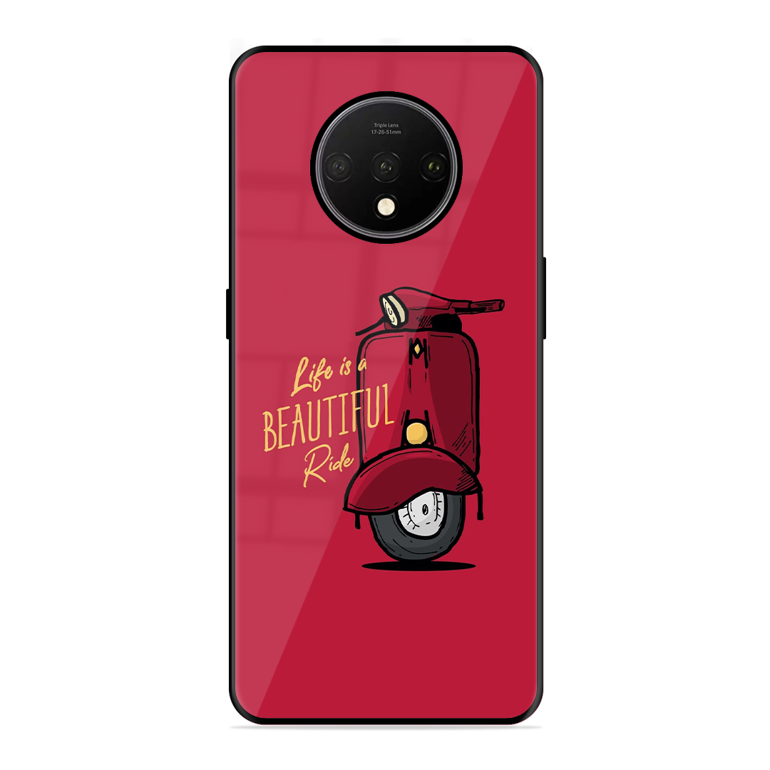 Tempered Glass Coated Metal Back Case for Oneplus 7T Ride Is Life