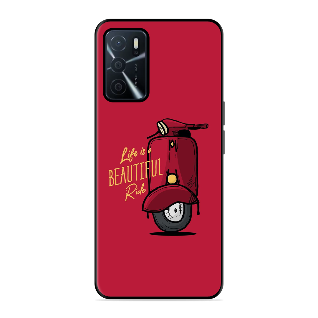 Tempered Glass Coated Metal Back Case for Oppo A16 Ride Is Life