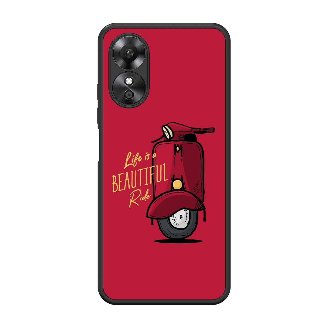 Tempered Glass Coated Metal Back Case for Oppo A17 Ride Is Life