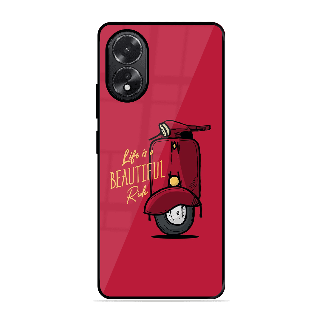 Tempered Glass Coated Metal Back Case for Oppo A38 Ride Is Life