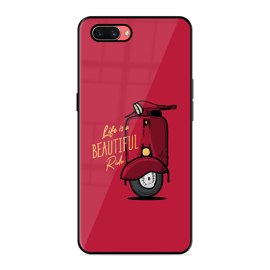 Tempered Glass Coated Metal Back Case for Oppo A3S Ride Is Life