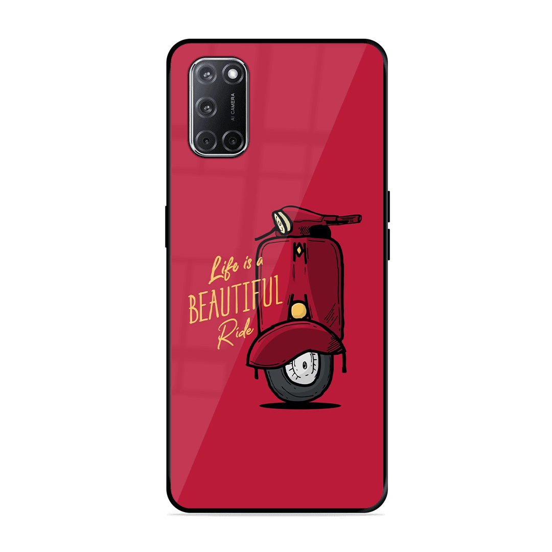 Tempered Glass Coated Metal Back Case for Oppo A52 Ride Is Life
