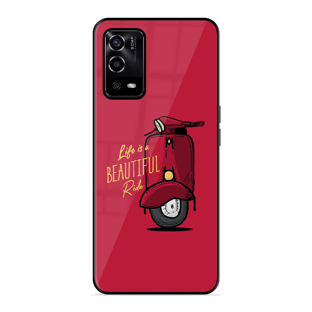 Tempered Glass Coated Metal Back Case for Oppo A55 Ride Is Life