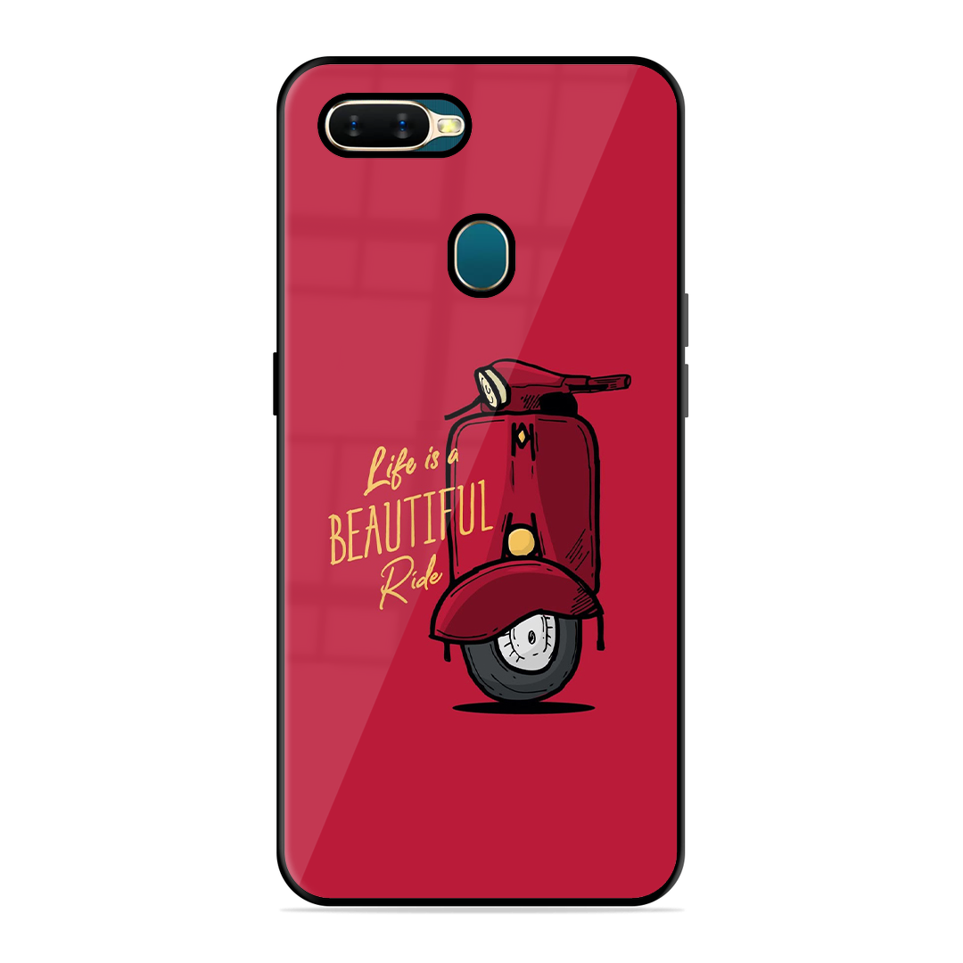 Tempered Glass Coated Metal Back Case for Oppo A7 Ride Is Life