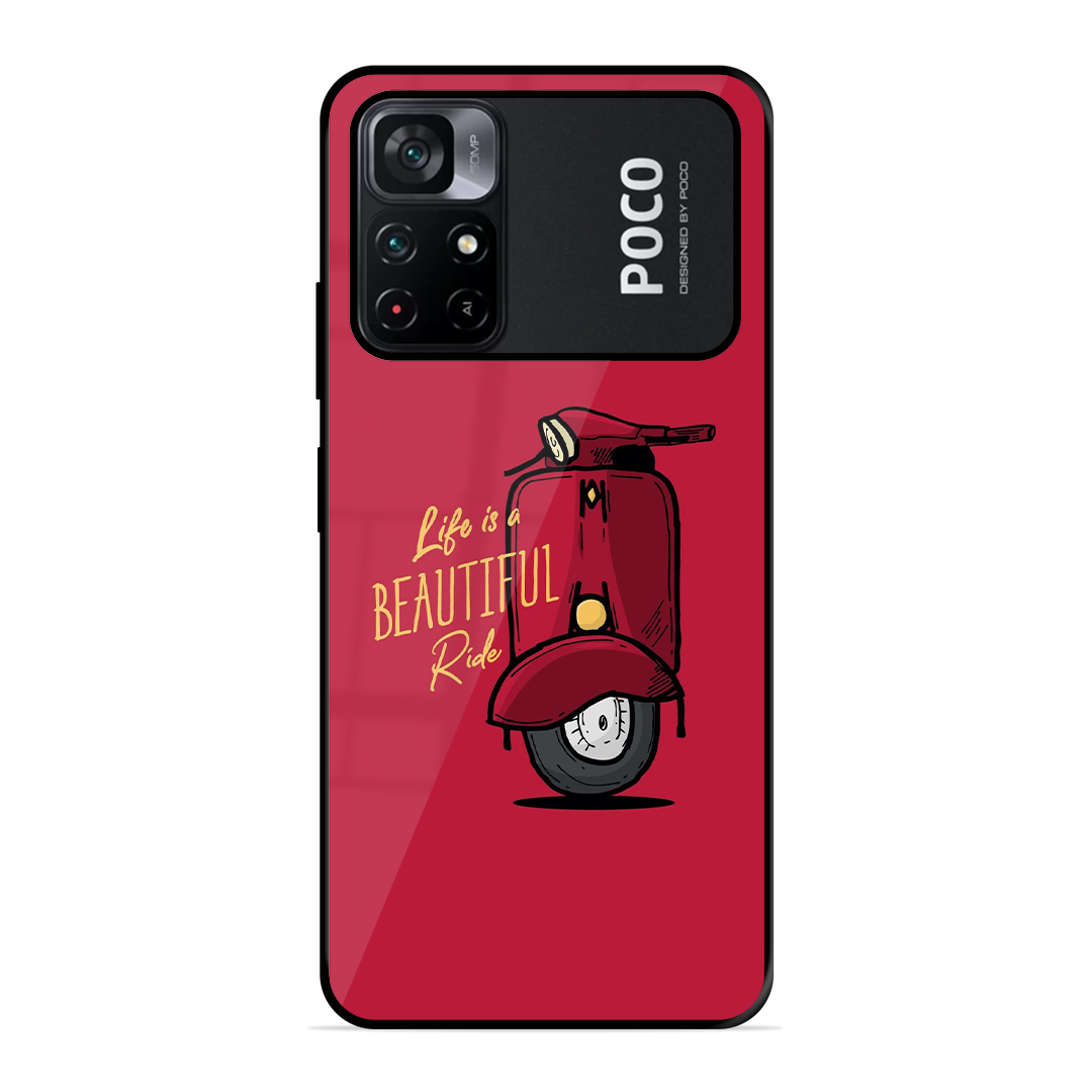 Introducing the ultimate fusion of bold design and rugged protection: the Tempered Glass Coated Metal Back Case for {brand} Poco M4 Pro 5G Ride Is Life. Thoughtfully crafted for those who demand both high performance and high style, this premium case redefines mobile protection with a stunning, custom twist.