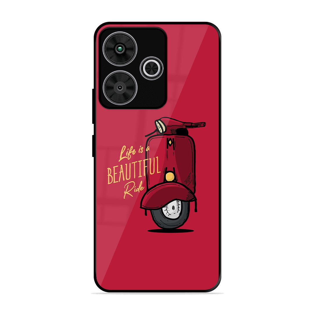 Tempered Glass Coated Metal Back Case for Poco M6 Plus 5G Ride Is Life
