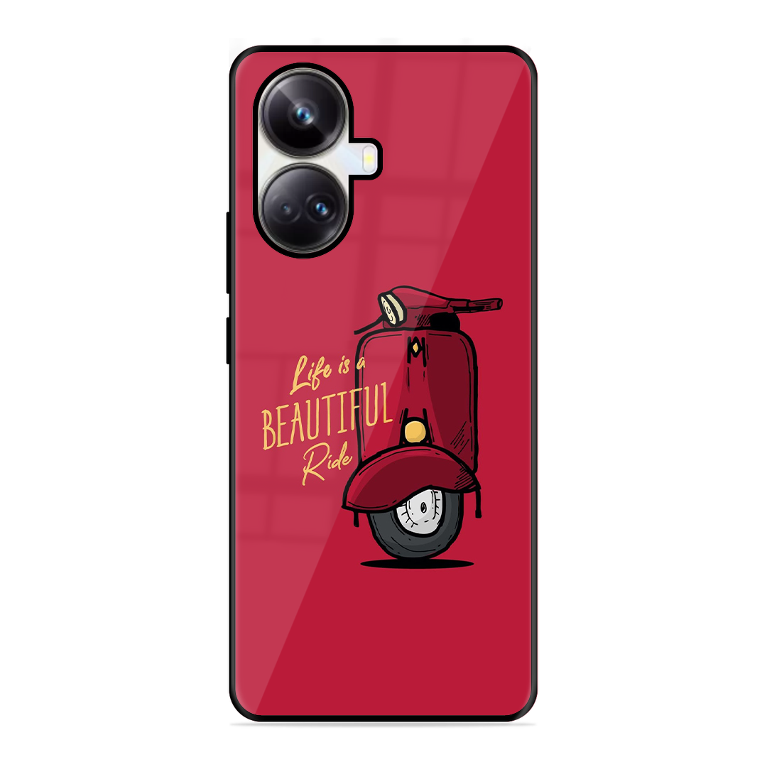 Tempered Glass Coated Metal Back Case for Realme 10 Pro Plus 5G Ride Is Life