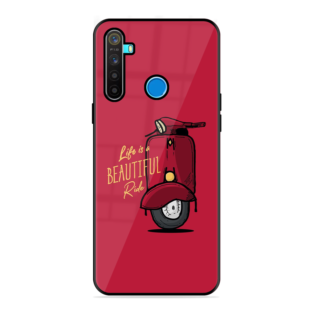 Tempered Glass Coated Metal Back Case for Realme 5 Ride Is Life