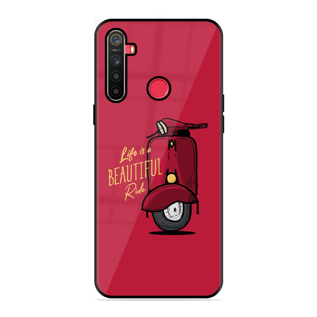 Tempered Glass Coated Metal Back Case for Realme 5S Ride Is Life