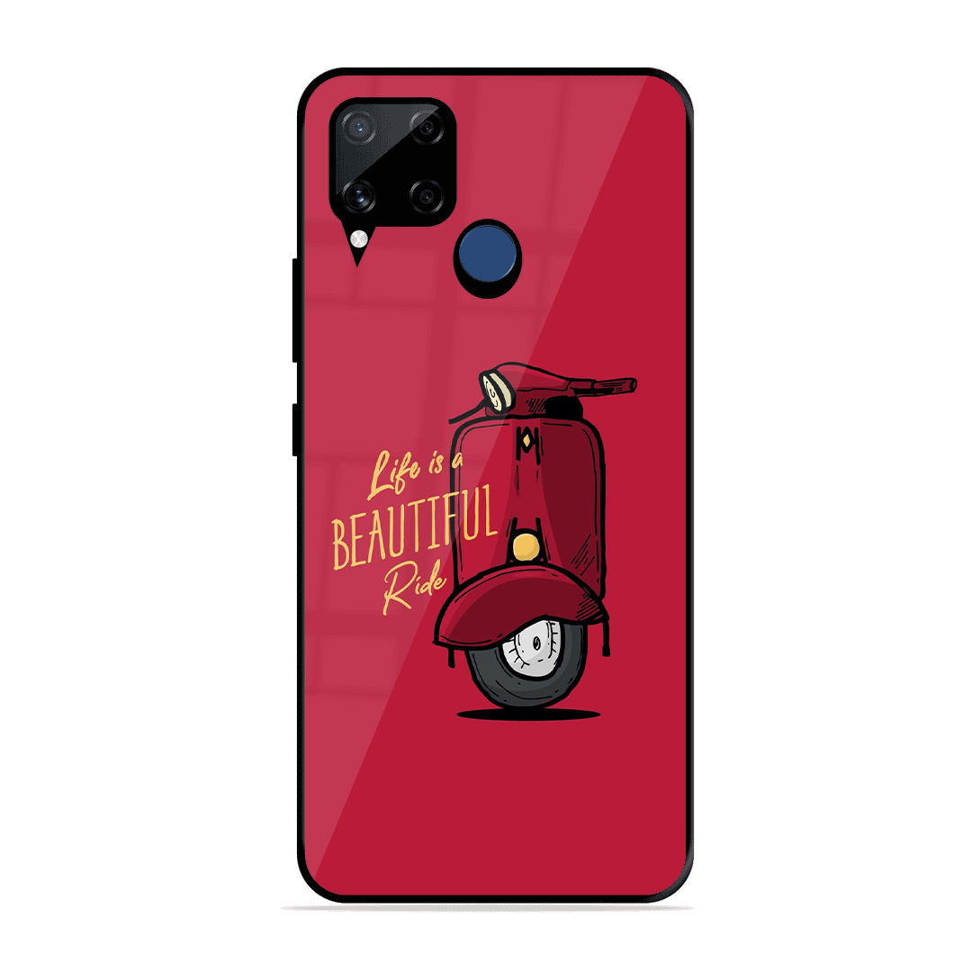 Tempered Glass Coated Metal Back Case for Realme C15 Ride Is Life