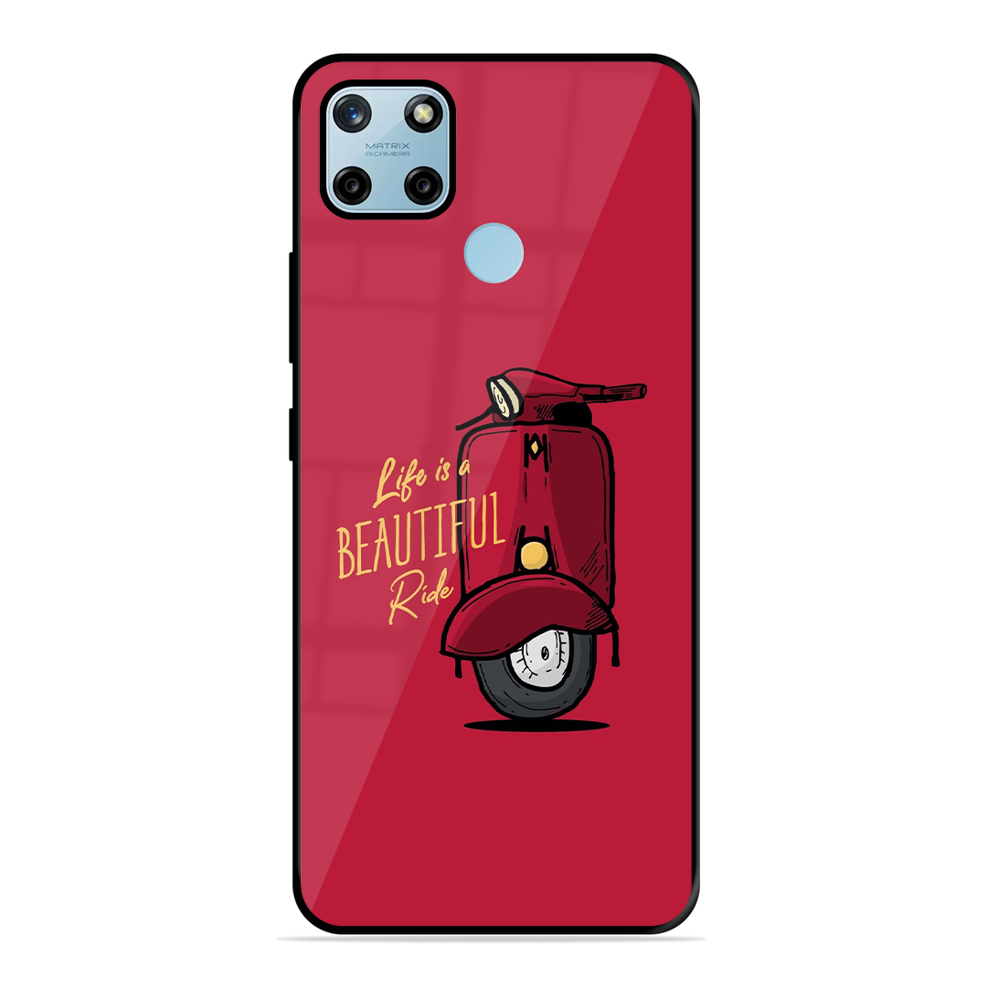 Tempered Glass Coated Metal Back Case for Realme C25Y Ride Is Life