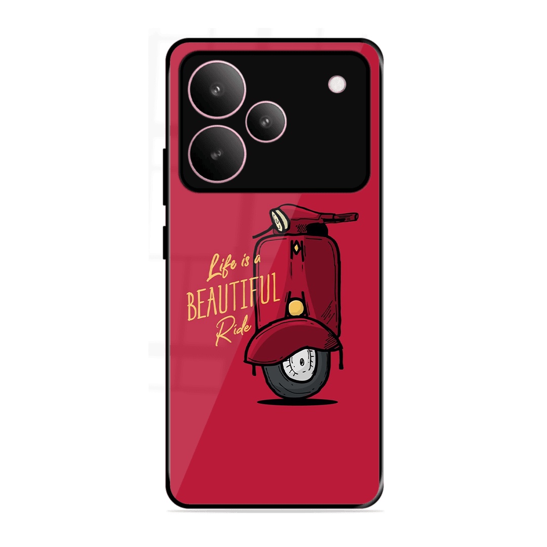 Tempered Glass Coated Metal Back Case for Realme-P4- Pro5G Ride Is Life