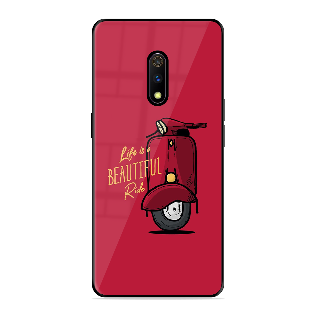 Tempered Glass Coated Metal Back Case for Realme X Ride Is Life