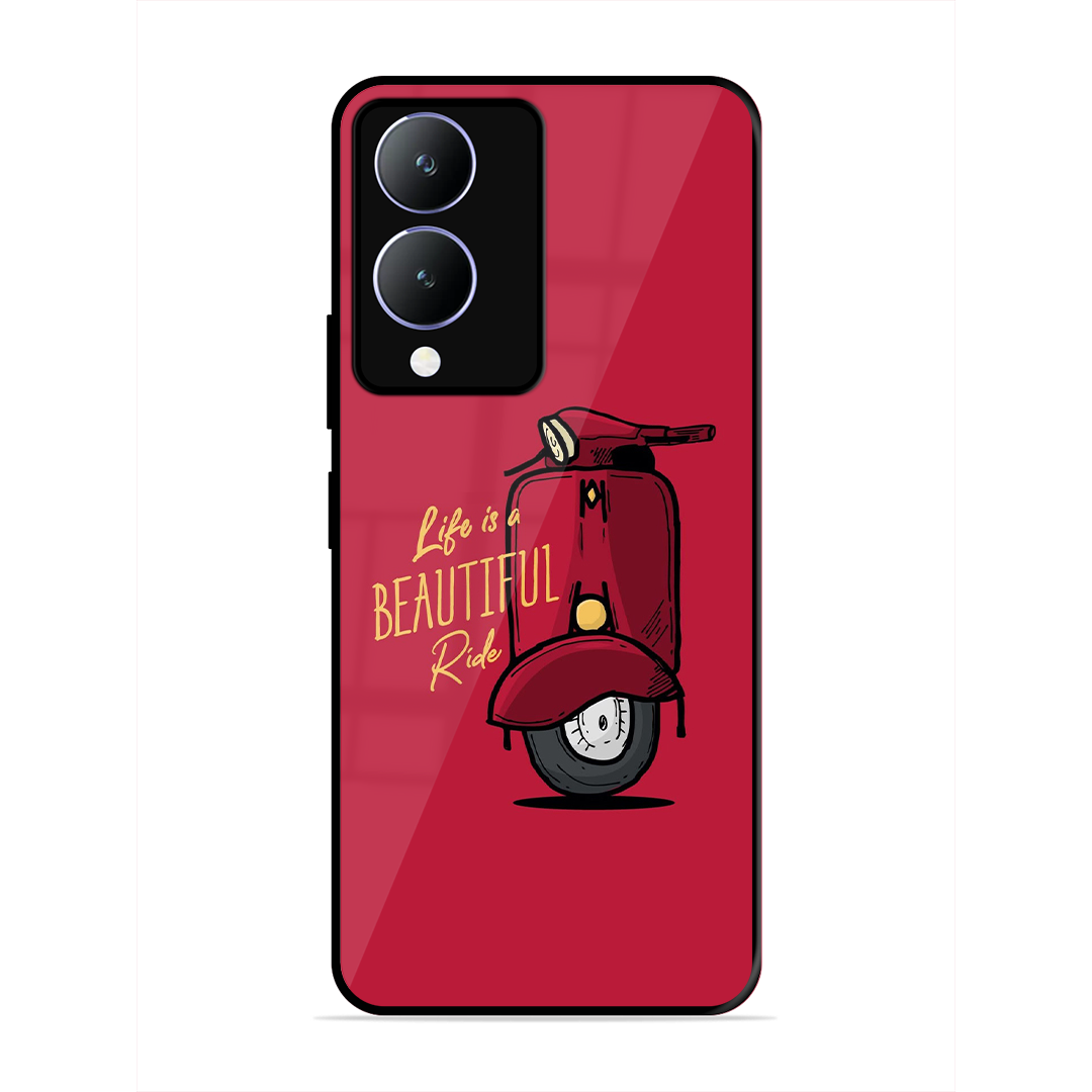 Tempered Glass Coated Metal Back Case for Vivo Y28 5G Cu Ride Is Life