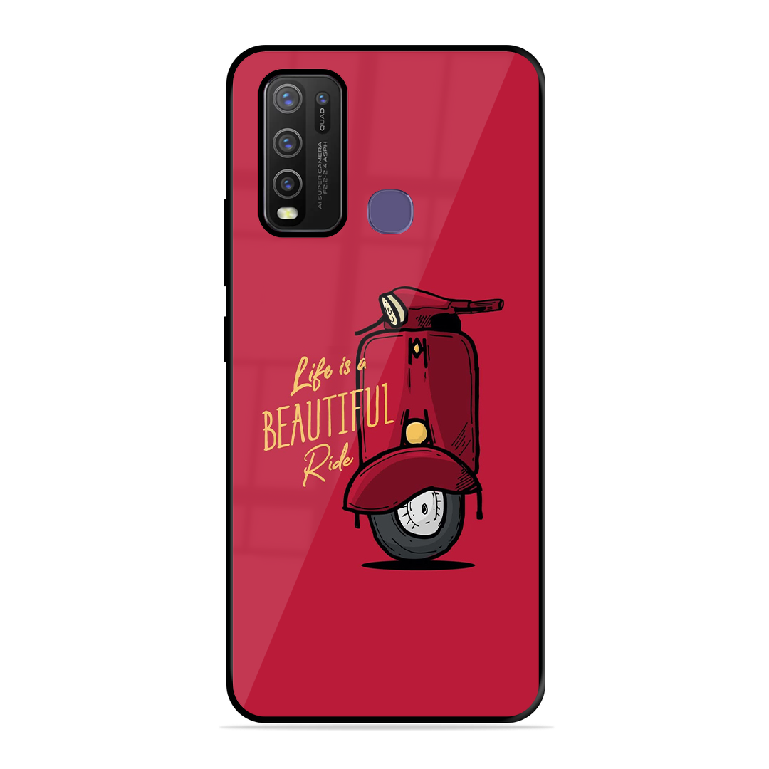 Tempered Glass Coated Metal Back Case for Vivo Y50 Ride Is Life