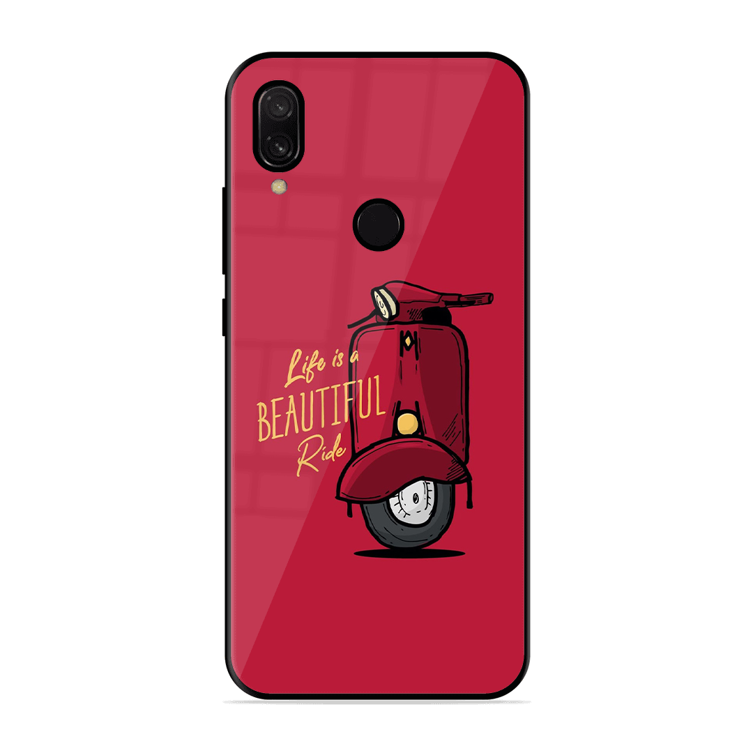 Tempered Glass Coated Metal Back Case for Xiaomi Redmi Y3 Ride Is Life