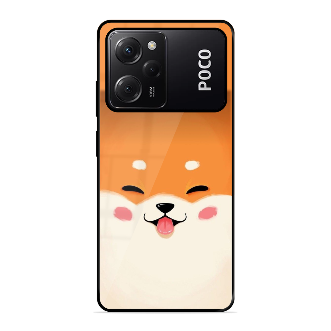 Tempered Glass Coated Metal Back Case for Poco X5 Pro 5G Shiba Inu
