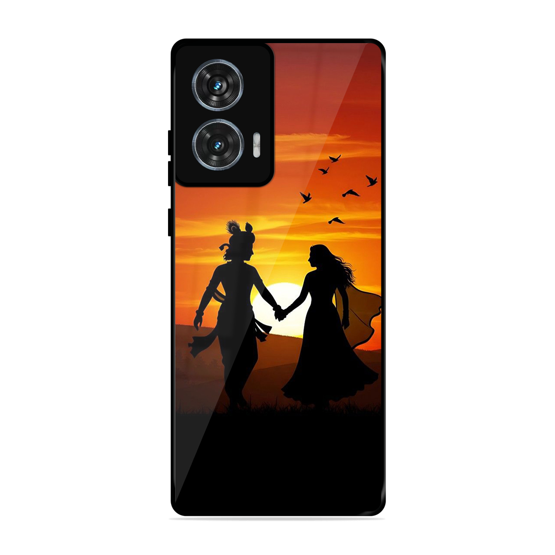 Tempered Glass Coated Metal Back Case for Motorola Moto Edge 50 Fusion Shree Radha Krishna