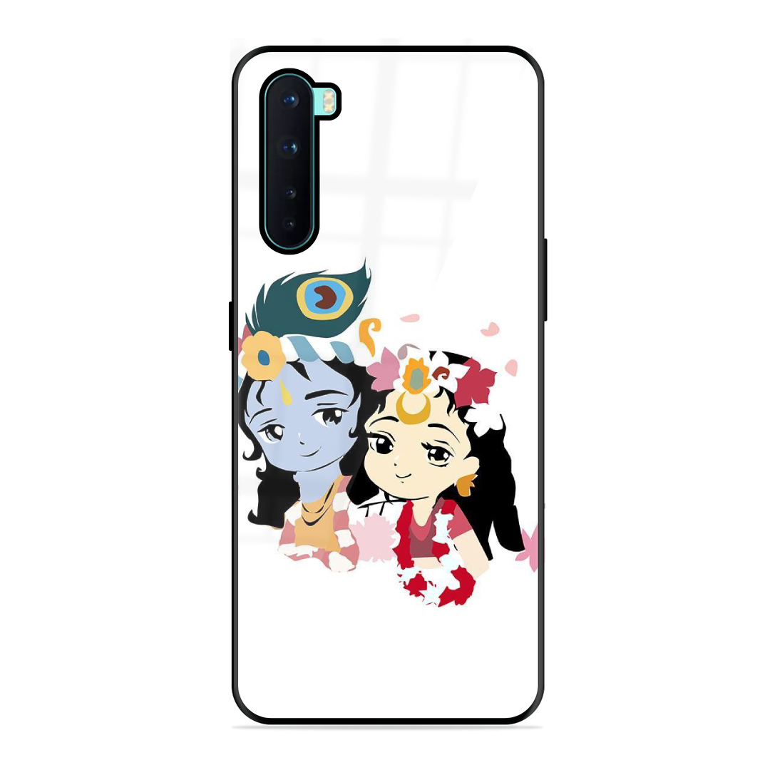 Tempered Glass Coated Metal Back Case for Oneplus Nord Shree Radha Krishna