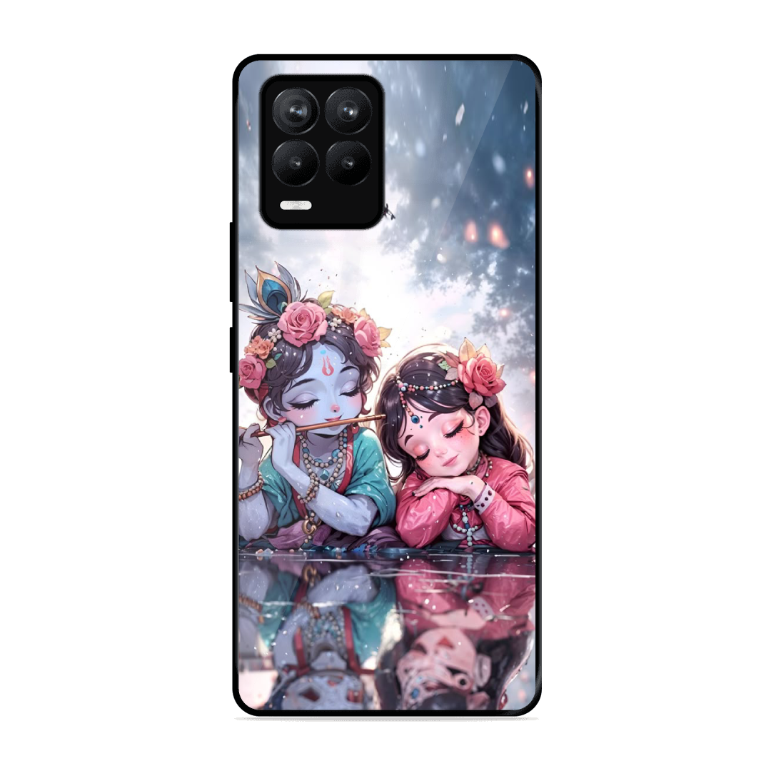 Tempered Glass Coated Metal Back Case for Realme 8 4G Shree Radha Krishna