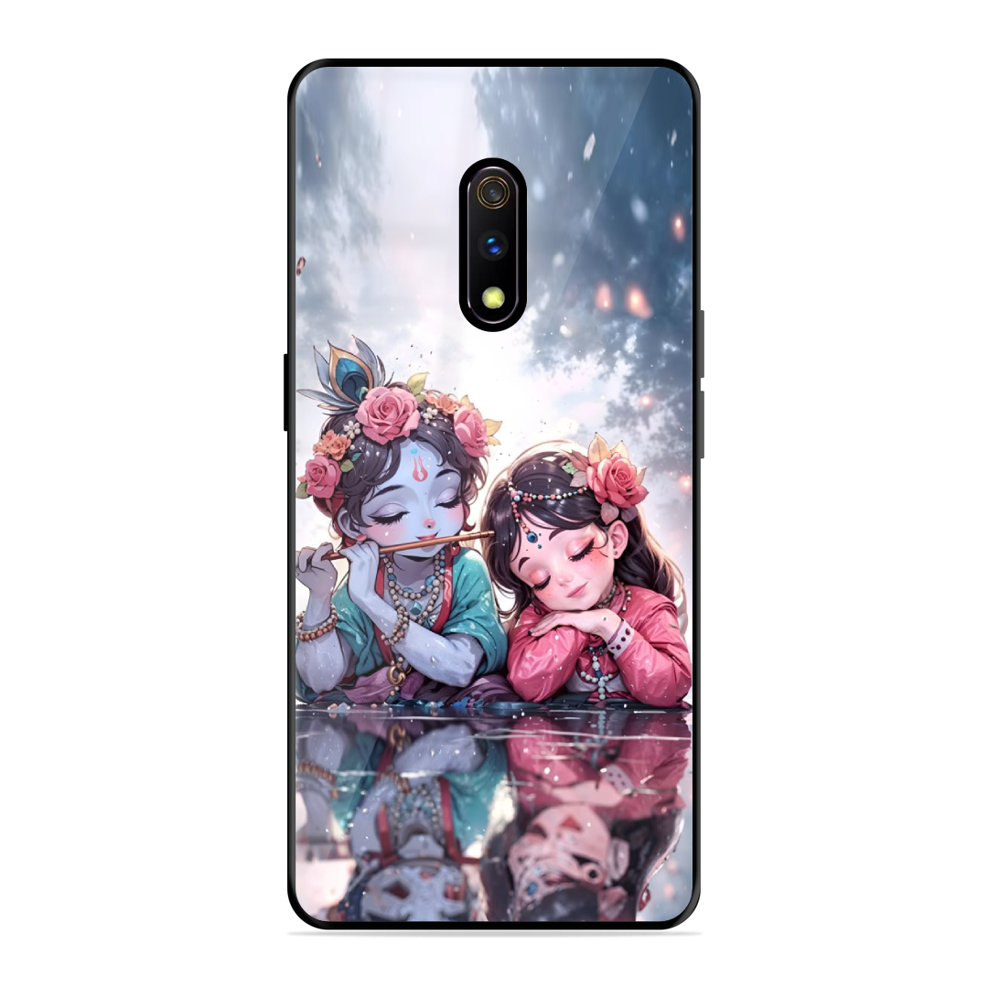 Tempered Glass Coated Metal Back Case for Realme X Shree Radha Krishna
