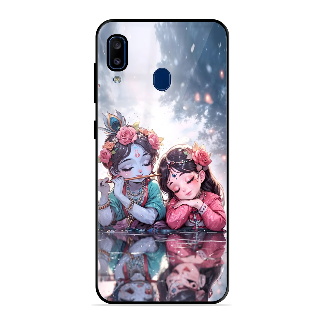 Tempered Glass Coated Metal Back Case for Samsung Galaxy A20 Shree Radha Krishna