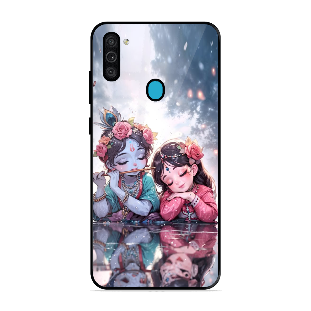 Introducing the ultimate fusion of bold design and rugged protection: the Tempered Glass Coated Metal Back Case for {brand} Samsung Galaxy M11 Shree Radha Krishna. Thoughtfully crafted for those who demand both high performance and high style, this premium case redefines mobile protection with a stunning, custom twist.