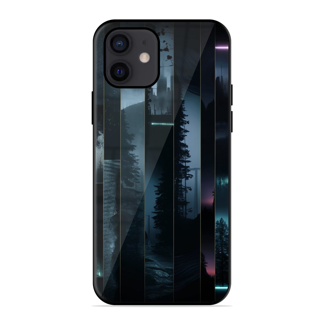 Tempered Glass Coated Metal Back Case for Apple Iphone 12 Stripped City