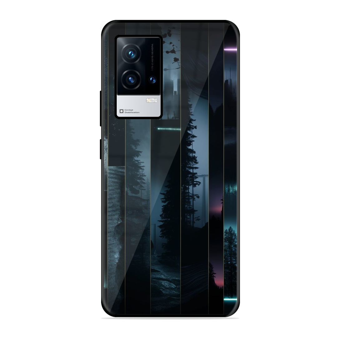 Tempered Glass Coated Metal Back Case for Iqoo 9 5G Stripped City