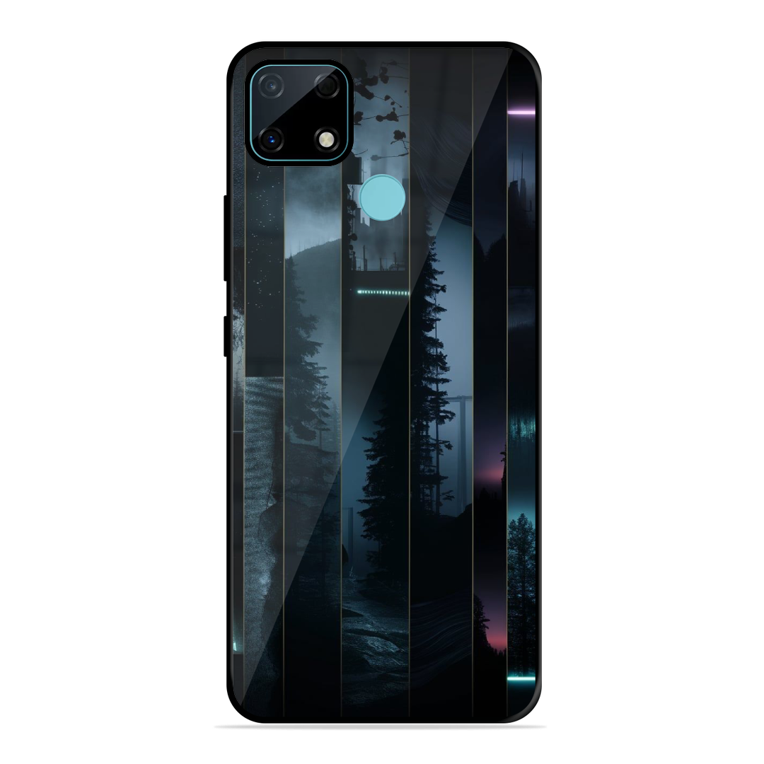 Tempered Glass Coated Metal Back Case for Realme Narzo 30A Stripped City